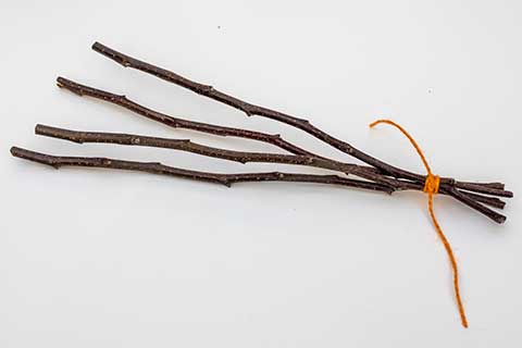 4. Make a bundle with the four longer sticks and tie together tightly at one end.