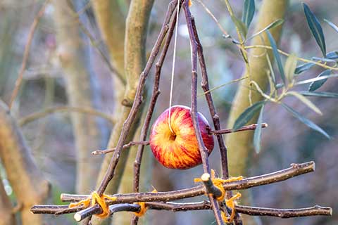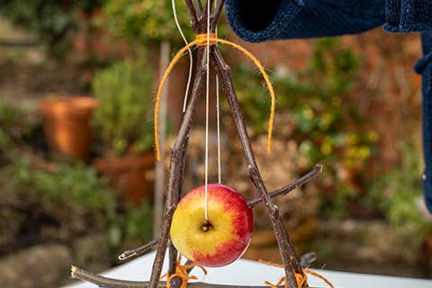 8. Then poke some string through and tie the apple to the top of your feeder.