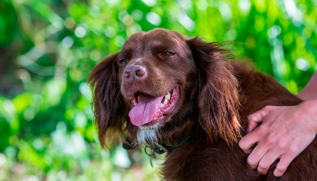 - Place one hand under his chest for support and place the other over the heart (just behind the left front elbow)