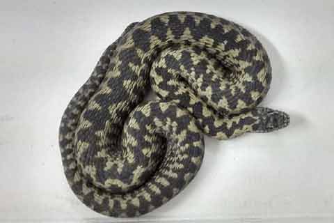 - A distinctive zigzag pattern down their back, red eyes and a vertical pupil.