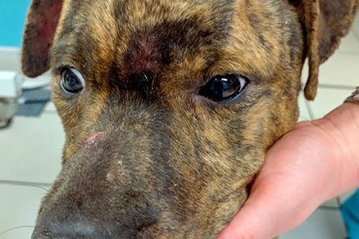Poor Bella was beaten so badly she had six wounds to her head. Amazingly, she remained kind natured despite this abuse and is now safe in her new home.
