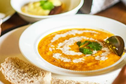 - Lentil curry – all you need is red lentils, canned coconut milk, canned tomatoes, onion and curry powder.