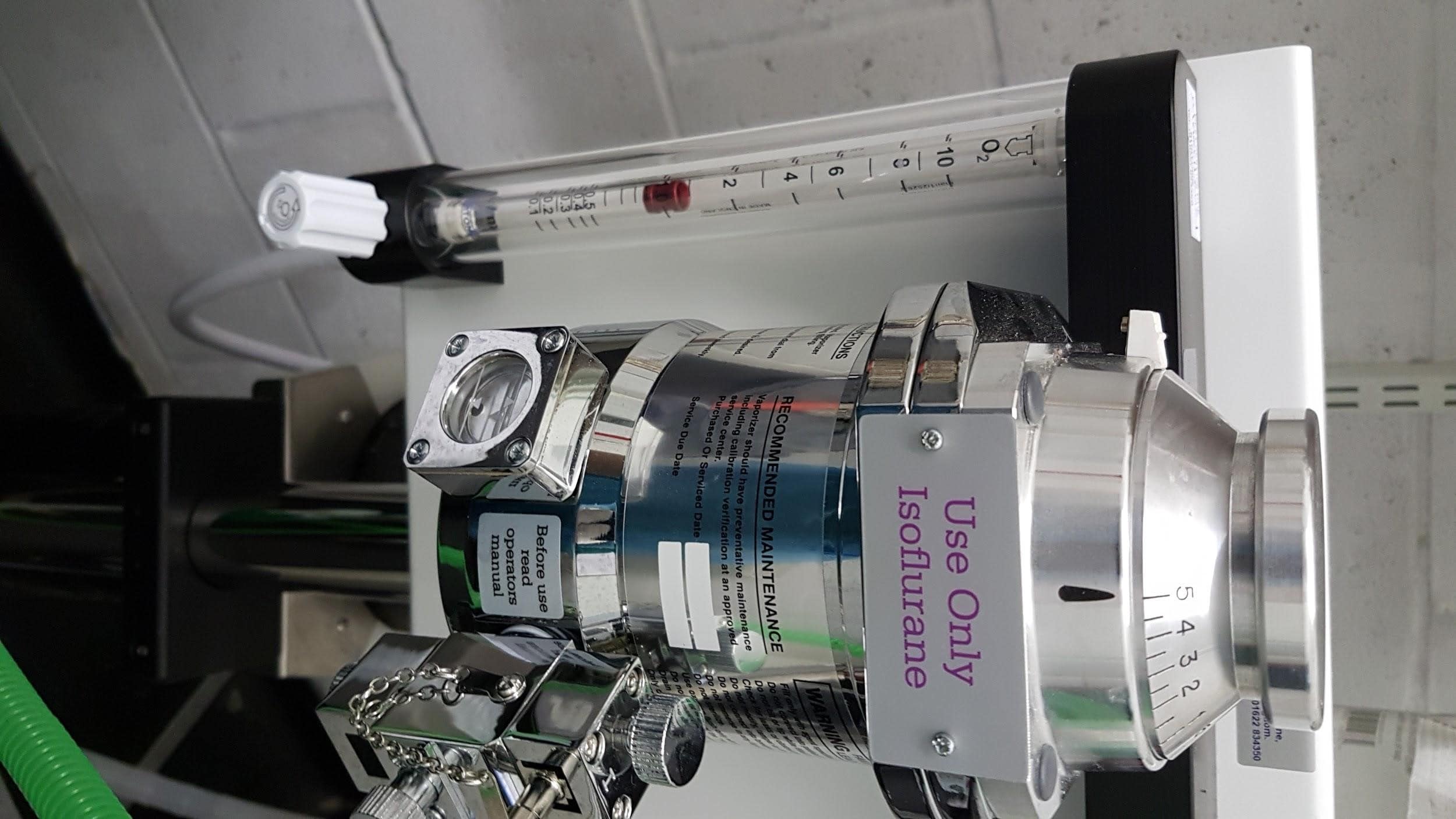 (2) Turn the oxygen dial to 1L/min flow rate and the Isoflurane vaporiser to 5%. This will work for most birds. For very large birds increase the oxygen flow rate accordingly. Keep the bird restrained until it is no longer moving and is anaesthetised. This should take a few minutes.