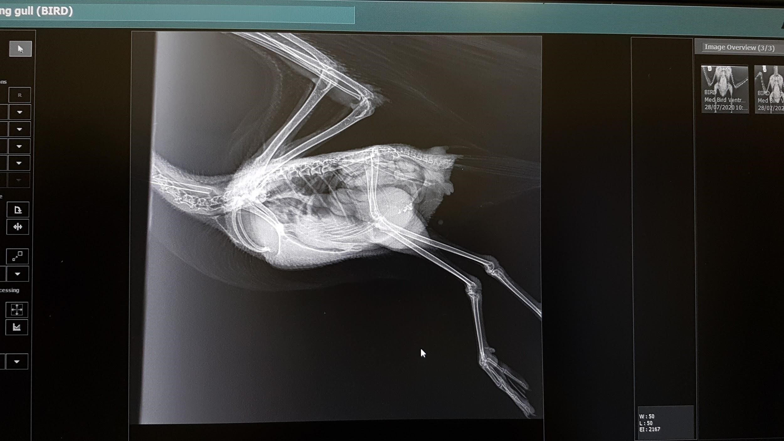 (7) The standard settings that we use for a herring gull sized bird are: KV - 44 and MAs - 4.0 but this will depend on your x-ray machine.
