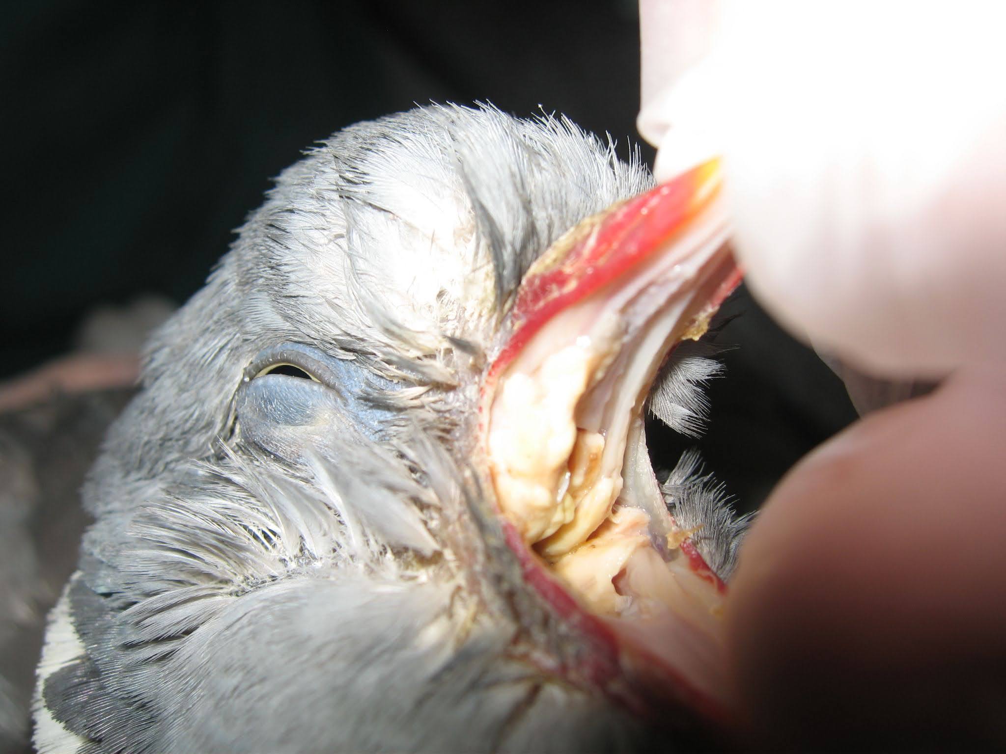 Earlier lesions may be found as an ‘incidental’ problem in young feral pigeons which have fallen from nest.