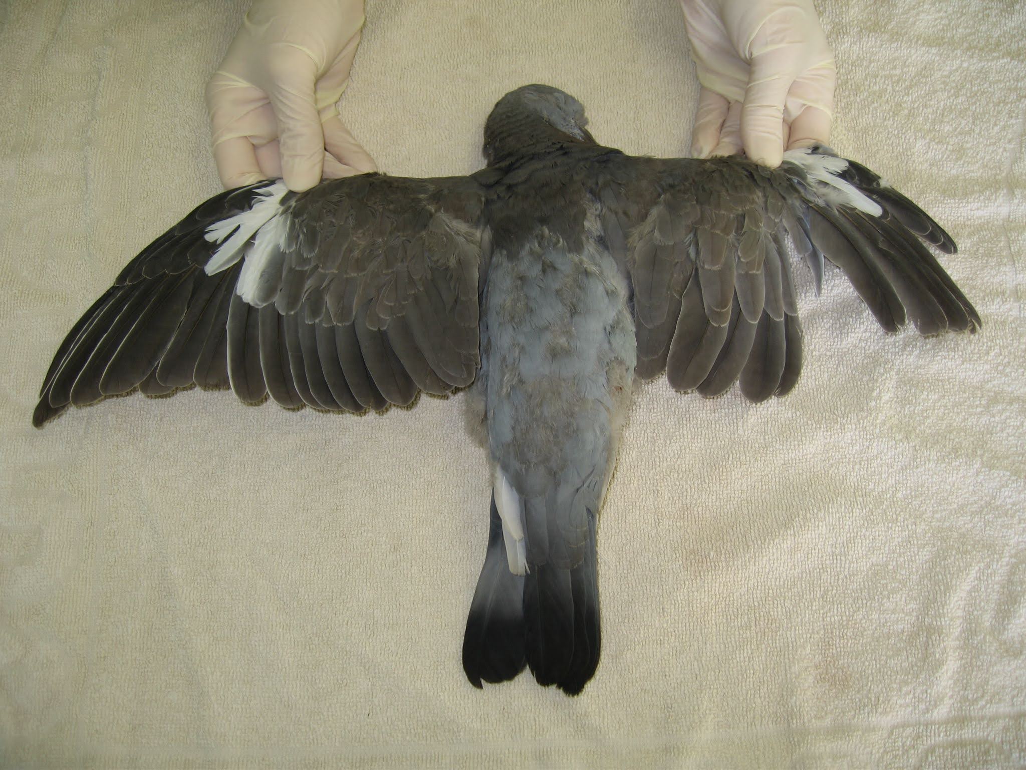 The prognosis for any fractures, or obviously abnormal wing carriage, in wood pigeons or collared doves is poor.