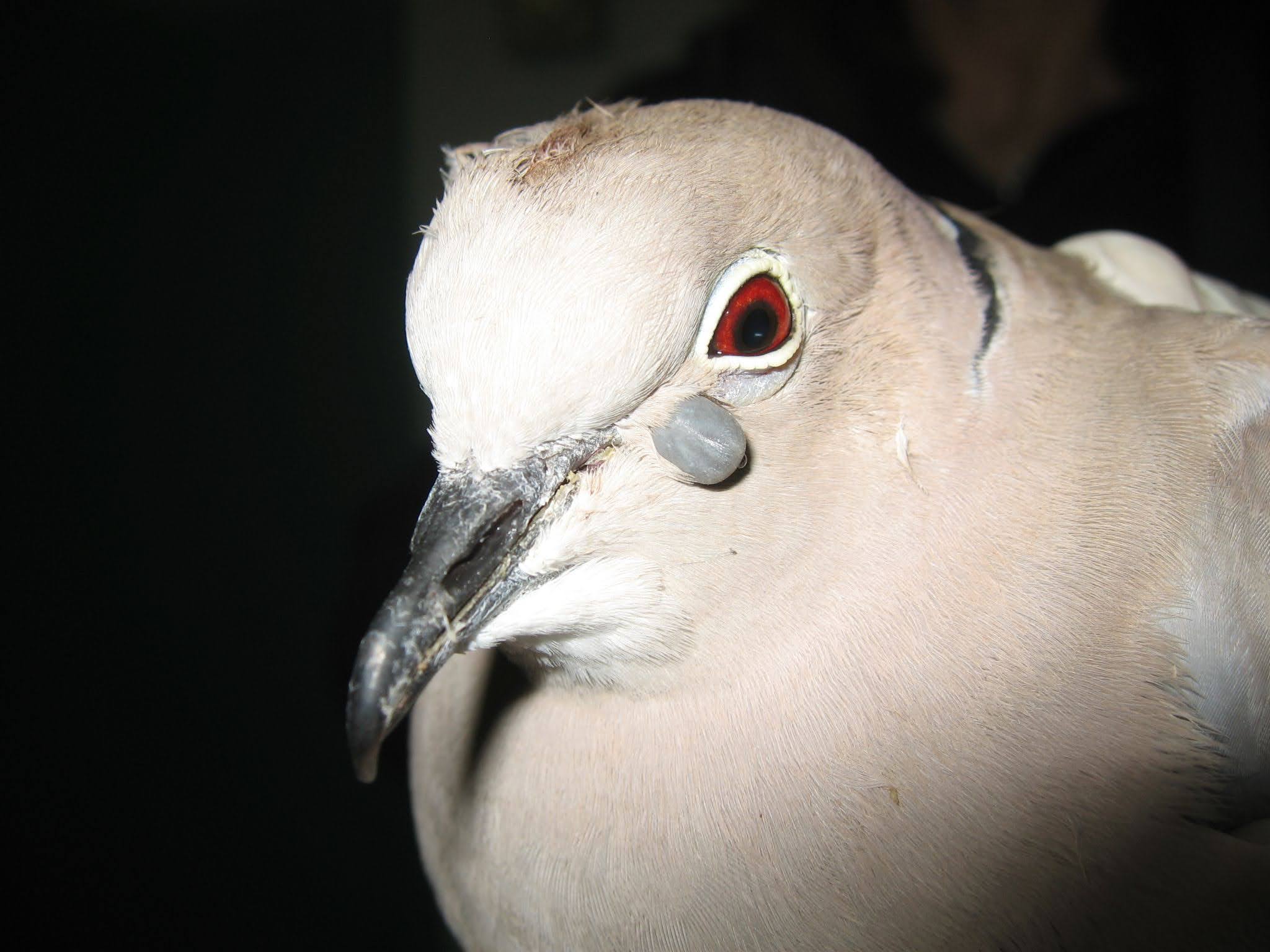 Collared doves are small (170-240g), with a black collar. They are more flighty, and less robust, than feral pigeons, although they are less prone to cage trauma than wood pigeons.