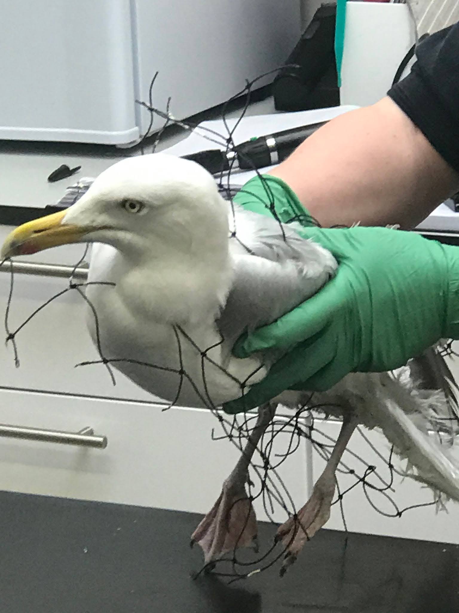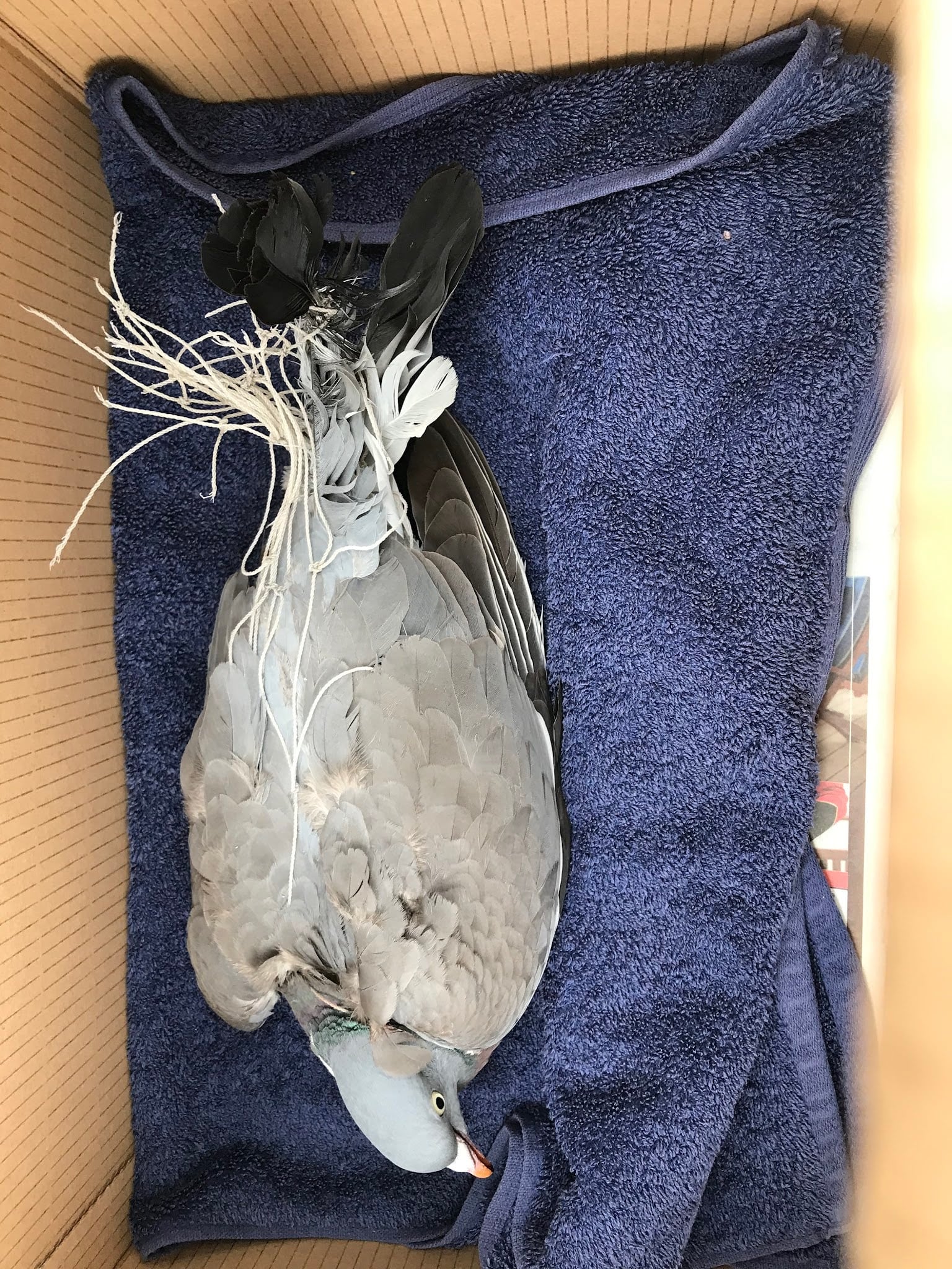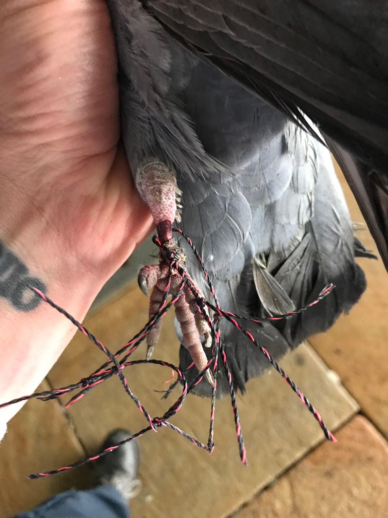 - Birds that have been caught behind/under or entangled in netting (mainly gulls and pigeons, but sometimes corvids or birds of prey)