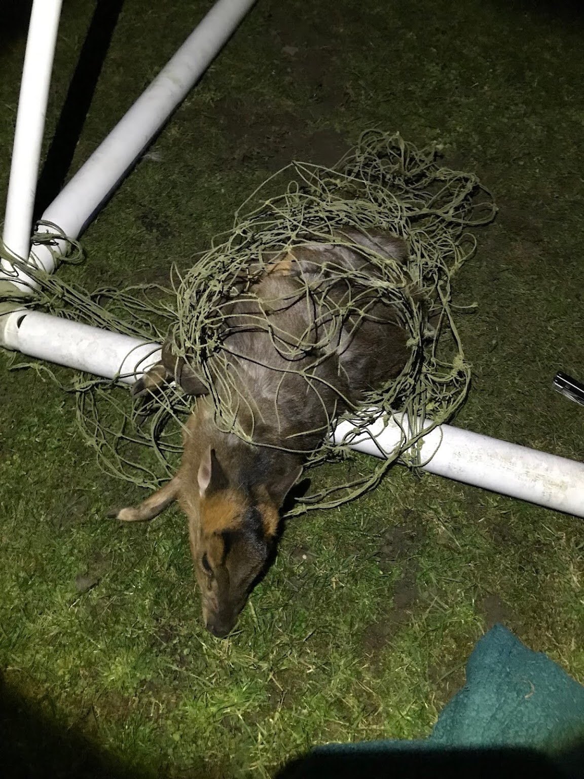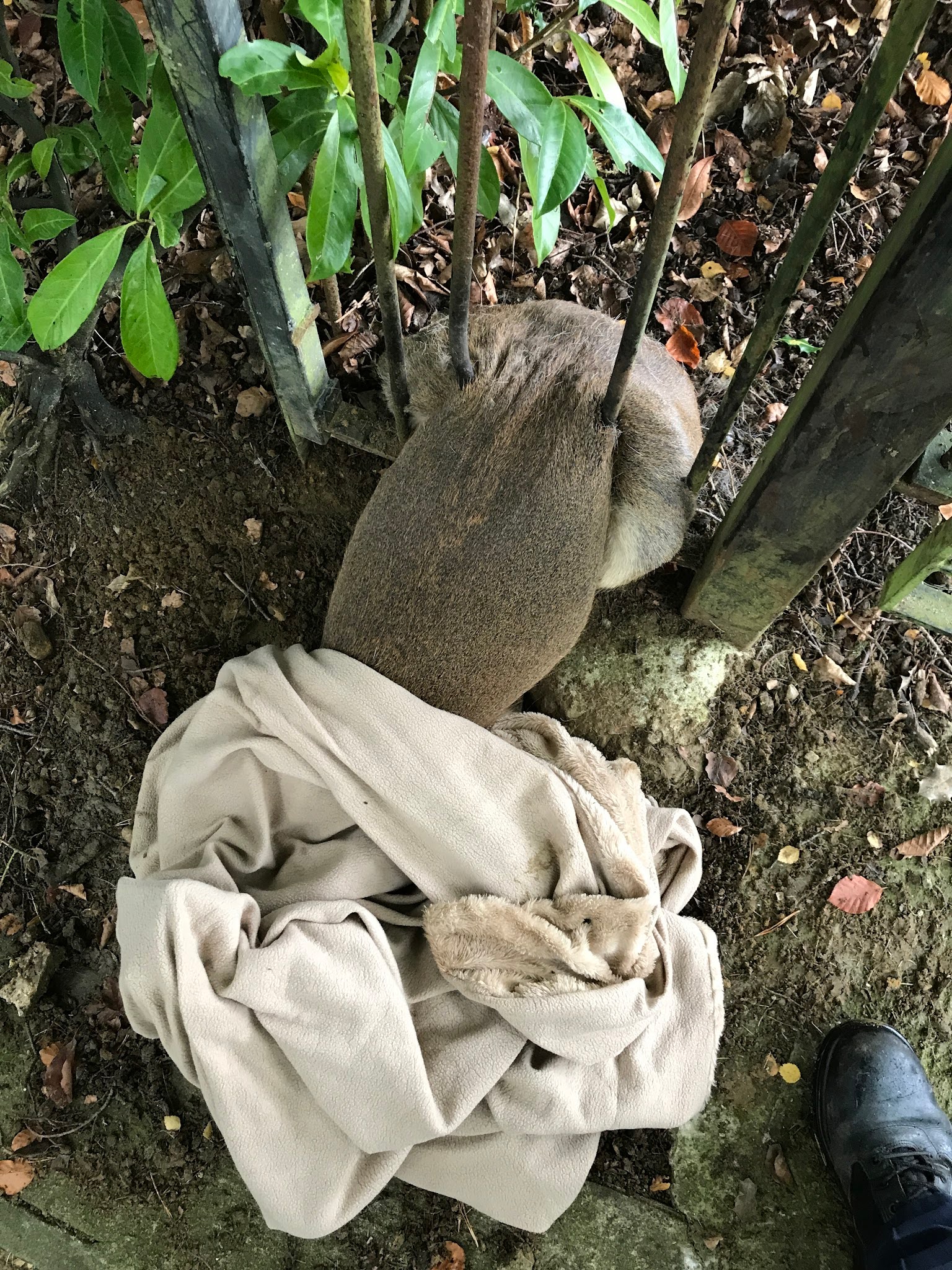 Sometimes we have no idea how long a deer has been caught for - dog walker might have spotted, usually alerted by their dog. It might be off a footpath, so potentially could have been trapped/caught for a day or even longer.