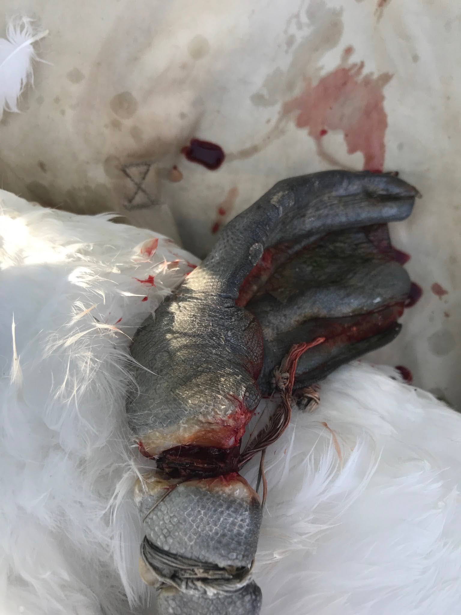 - Missing limbs - possible the leg/foot/wing or part of the leg/foot/wing has become detached - euthanase.